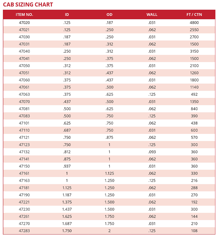 Excelon® CAB tubing can be ordered from stock in .250″ O.D. to 6″ O.D. and up to 14″ O.D. on custom orders in a variety of wall thickness. Specific formulations are available for tints and colors with performance additives for ultraviolet stabilization, flame retardant, and radiation resistance.