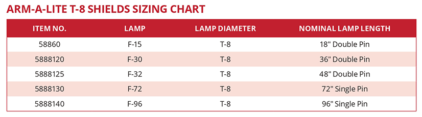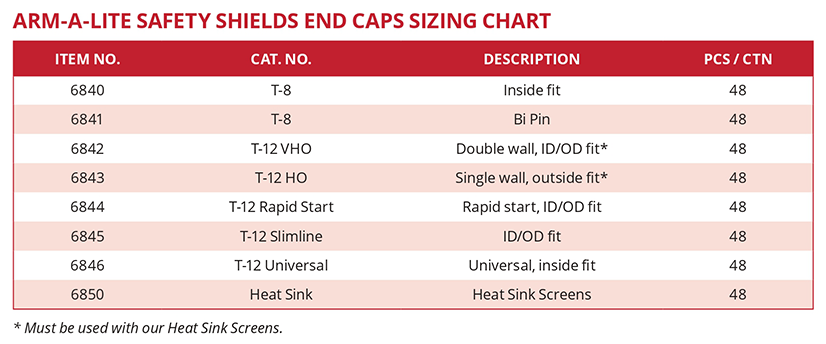 Made from extruded polycarbonate, Arm-A-Lite fluorescent bulb guards fit securely over fluorescent lamps to contain lamp debris after breakage. The Arm-A-Lite sleeve meets OSHA requirements and complies with the FDA and USDA food processing standards. Specially designed fluorescent bulb end caps provide a direct passage into the atmosphere for released gas and pressure. Along with being safe and reusable, Arm-A-Lite offers insulation for outdoor or low-temperature applications and protects against dirt, dust, and insects. Arm-A-Lite fluorescent bulb guards and end caps are available in both clear and colors.