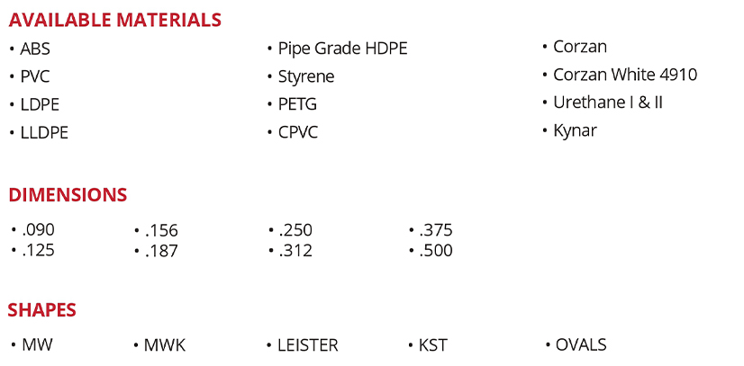 The most important element to successful thermoplastic welding is the filler rod. Excelon® Welding Rod is extruded using only the highest-grade resins available.